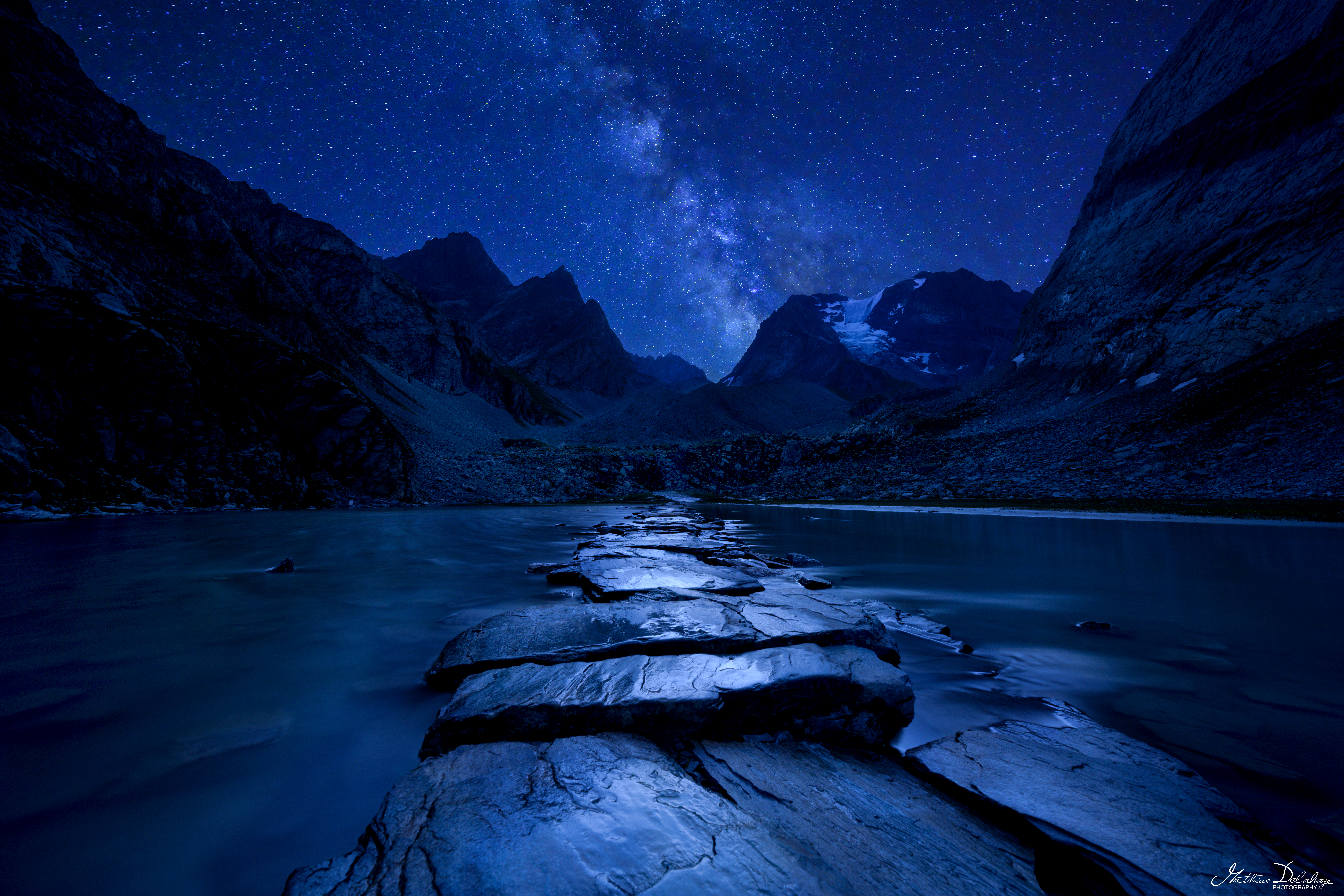 Blue-Toned Night View of Lac des Vaches with the Milky Way above the Grande Casse