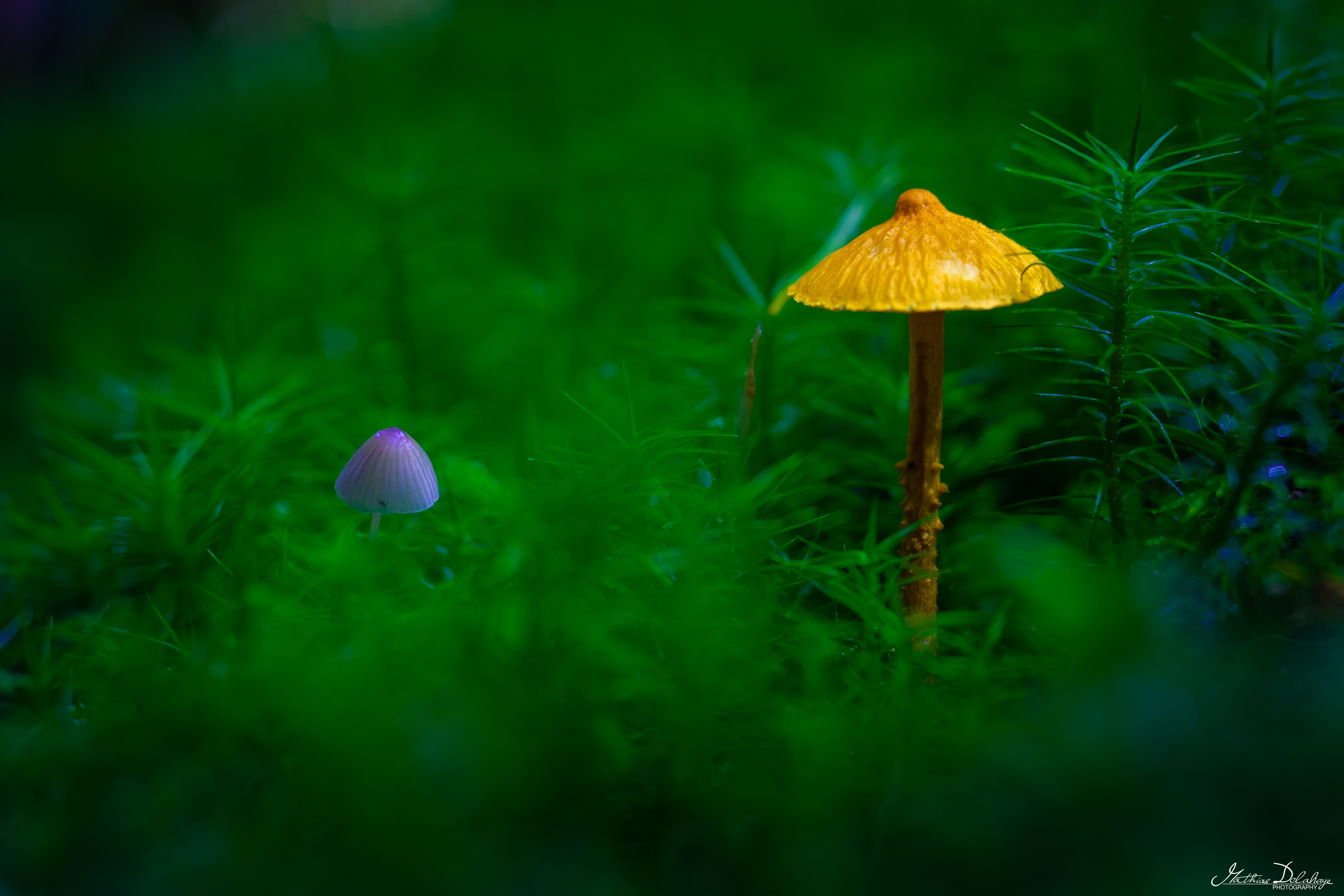 A close-up shot of a mushroom resting on a soft bed of mosses (Polytrichum), emphasizing its natural textures and delicate details. My original plan was to capture mushrooms with my macro lens, but since this hike was mostly over mineral ground, I decided to leave the lens at home. Naturally, on the way back, the trail led through a forest full of mushrooms, yet I had no macro lens, no tripod, and none of the gear I would have needed.